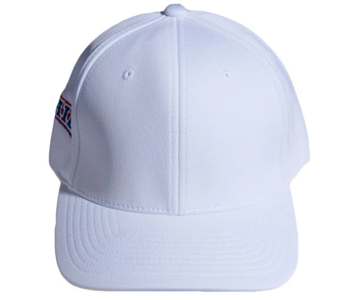 NAIA White Flex Fit Football Referee Cap. Performance wool fabric. Embroidered with the NAIA logo on the right panel. Solid white Flex fit sizes and S/M and L/X .