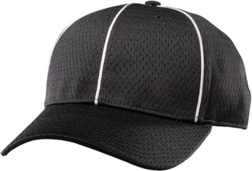 Black Fitted ProMesh Football Referee Cap by Richardson. Heavyweight, two-layer, ProMesh fabric. ProCrown shape with buckram-fused front panels. Matching color crown and undervisor with black sweatband. Pre-curved PE visor. Sizes 6 7/8-8.