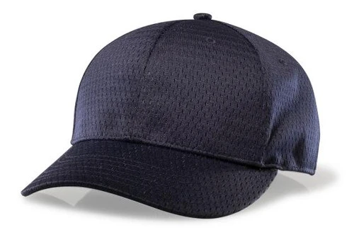 Richardson System5 Promesh Long Base Umpire Cap. Heavyweight, two-layer, Promesh fabric by Richardson. ProCrown shape with buckram-fused front panels, matching color crown and undervisor. Black sweatband with pre-curved PE visor. Base 2 3/4″-8 stitch visor. Flex-fit cap available in 5 sizes. Black or navy.