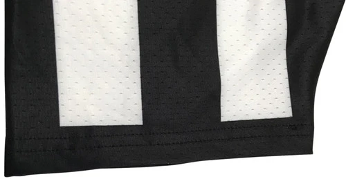 Plain shirt, no flag, no logo. This distinct stripe football shirt has 2 inch black and white stripes. Made with 100% moisture management Body Flex fabric. Made with 100% moisture management Body Flex® fabric. Mesh fabric technology that wicks moisture from the body, increasing comfort. Self-fabric byron collar and self fabric sleeve ends.